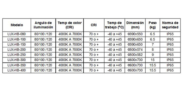 Estas luminarias LED de alta potencia utilizan un control térmico especial y patentado para asegurar una baja temperatura en las conexiones LED. Gracias al potente disipador de calor, la potencia máxima puede ser de hasta 500 W con un flujo lumínico de hasta 45000lm, manteniendo un peso extremadamente ligero para facilitar su uso y dar seguridad en la instalación. Además, con la baja temperatura de las conexiones se asegura una mayor vida útil y se garantiza su alta luminosidad. Son perfectas para fines de iluminación industrial y comercial.