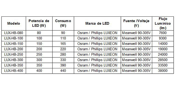 Estas luminarias LED de alta potencia utilizan un control térmico especial y patentado para asegurar una baja temperatura en las conexiones LED. Gracias al potente disipador de calor, la potencia máxima puede ser de hasta 500 W con un flujo lumínico de hasta 45000lm, manteniendo un peso extremadamente ligero para facilitar su uso y dar seguridad en la instalación. Además, con la baja temperatura de las conexiones se asegura una mayor vida útil y se garantiza su alta luminosidad. Son perfectas para fines de iluminación industrial y comercial.